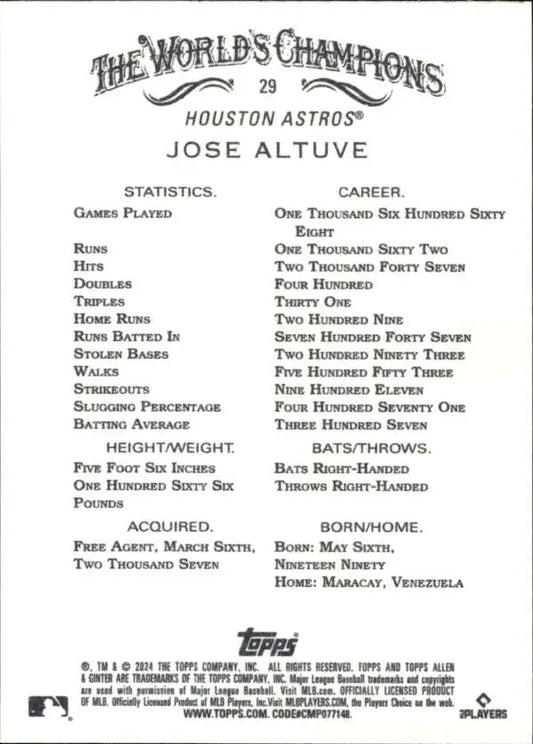 2024 Allen & Ginter #29 Jose Altuve NM-MT Houston Astros Baseball Card