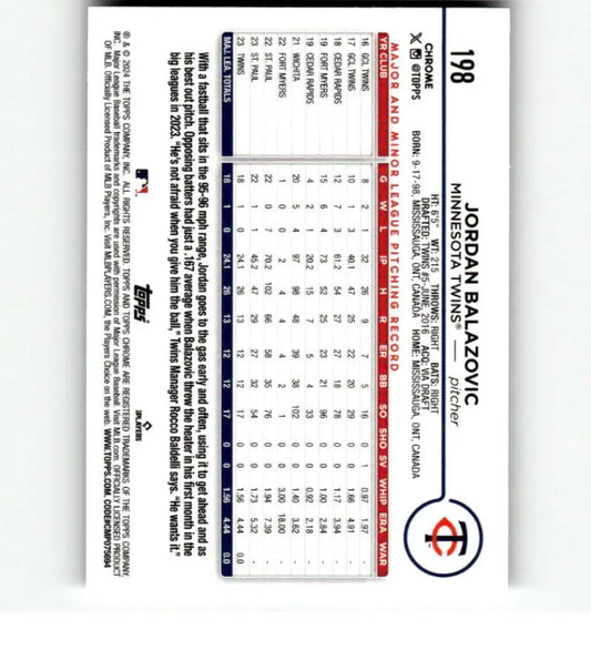 2024 Topps Chrome X-Fractor #198 Jordan Balazovic NM-MT RC Rookie Minnesota Twins Baseball Card
