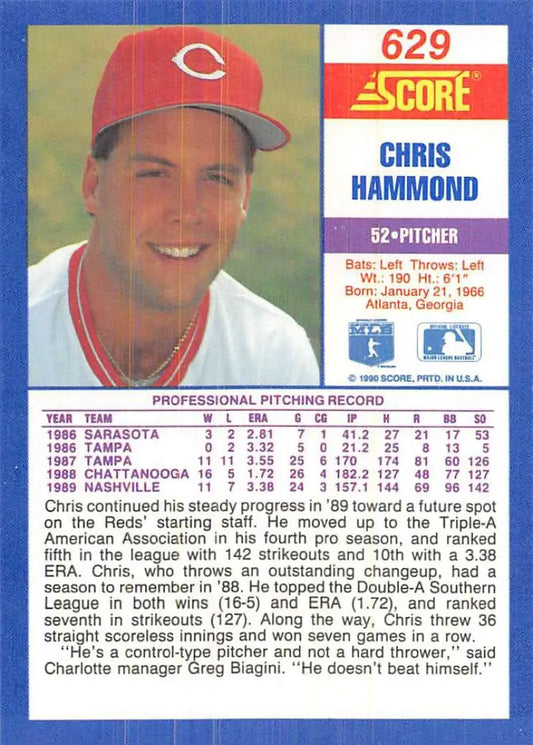 1990 Score #629 Chris Hammond NM-MT RC Rookie Cincinnati Reds Baseball Card
