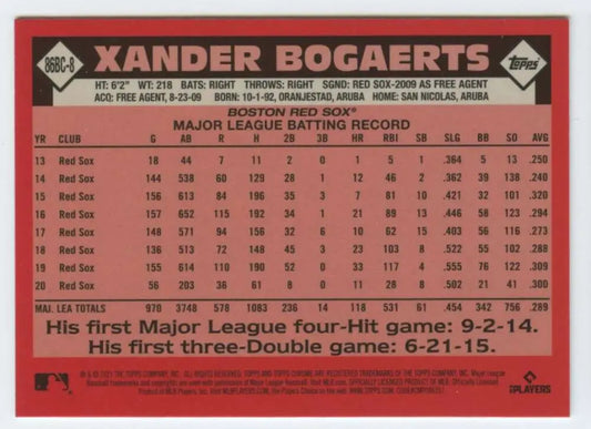 2021 Topps Chrome 1986 Topps Baseball Refractor #86BC-8 Xander Bogaerts NM-MT Boston Red Sox Baseball Card
