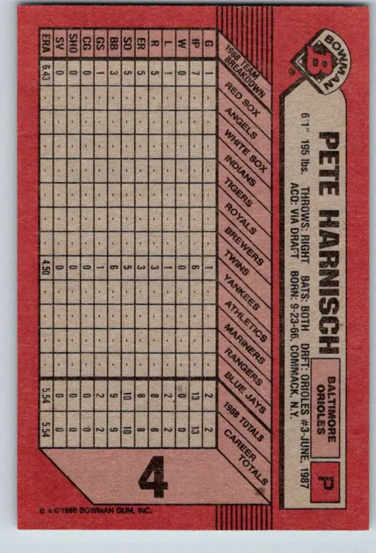 1989 Bowman #4 Pete Harnisch NM-MT RC Rookie Baltimore Orioles Baseball Card