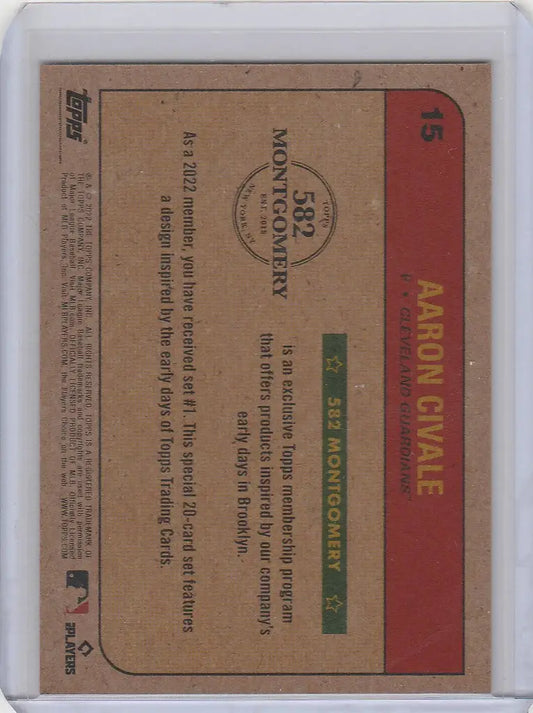 2022 TOPPS MONTGOMERY 582 SET #15 AARON CIVALE CLEVELAND GUARDIANS