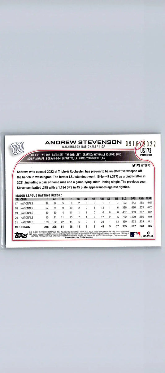 2022 Topps Update #US173 Andrew Stevenson Gold #/2022
