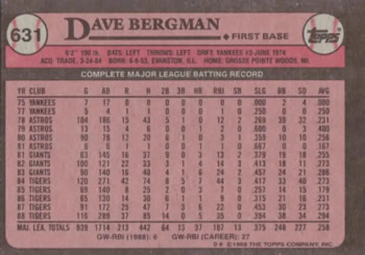1989 Topps #631 Dave Bergman NM-MT Detroit Tigers Baseball Card