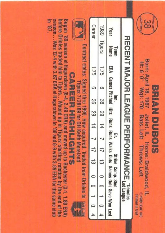1990 Donruss #38 Brian DuBois VG-EX RC Rookie Detroit Tigers Baseball Card