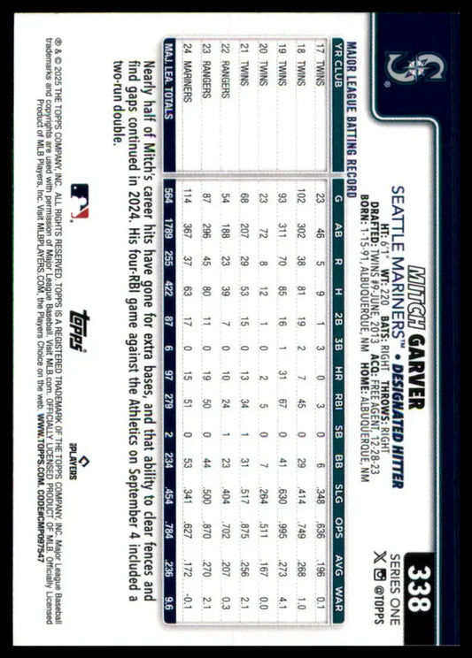 Mitch Garver 2025 Topps #338 Seattle Mariners