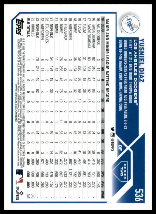 Yusniel Diaz Rookie 2023 Topps #536 Los Angeles Dodgers