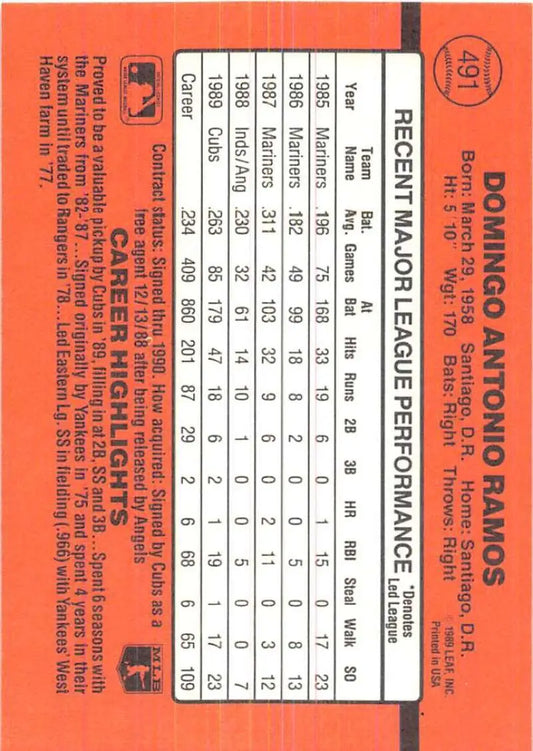 1990 Donruss #491 Domingo Ramos VG-EX Chicago Cubs Baseball Card