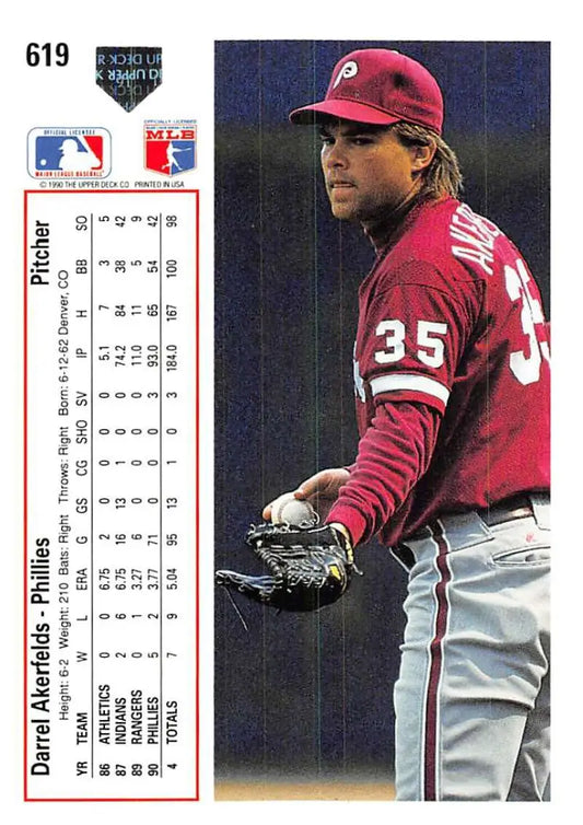 1991 Upper Deck #619 Darrel Akerfelds NM-MT Philadelphia Phillies Baseball Card