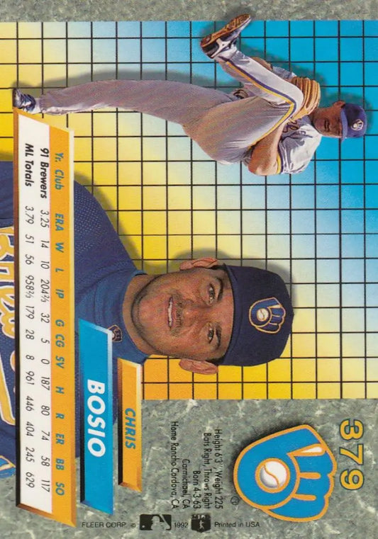1992 Fleer Ultra #379 Chris Bosio NM-MT Milwaukee Brewers Baseball Card