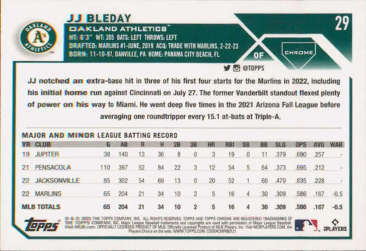 2023 Topps Chrome #29 JJ Bleday NM-MT RC Rookie Oakland Athletics Baseball Card