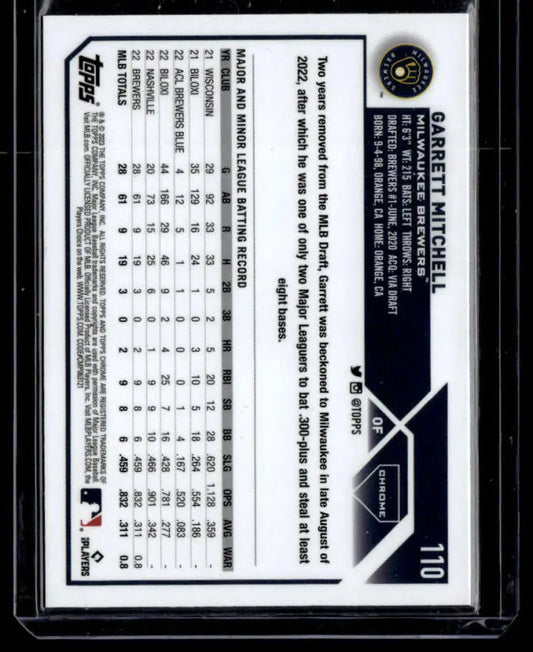 2023 Topps Chrome X-Fractor #110 Garrett Mitchell NM-MT RC Rookie Milwaukee Brewers Baseball Card