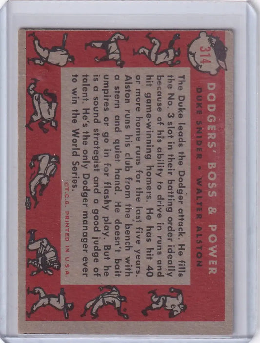 1958 Topps Baseball #314 Dodgers Boss & Power Alston/Snider Los Angeles Dodgers