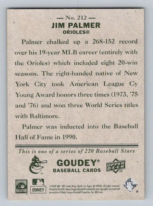 2009 Upper Deck Goudey #212 Jim Palmer Baltimore Orioles