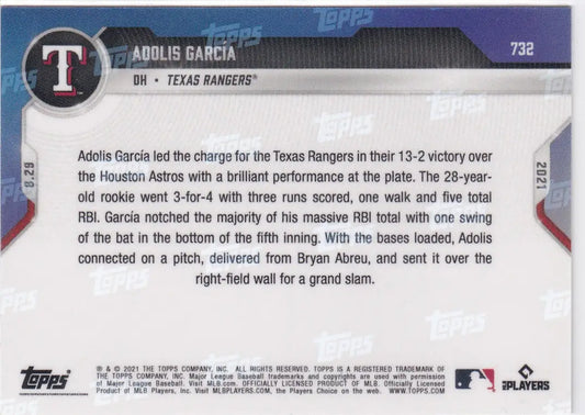 2021 TOPPS NOW #732 ADOLIS GARCIA- TEXAS RANGERS
