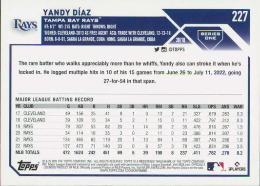 2023 Topps #227 Yandy Diaz NM-MT Tampa Bay Rays Baseball Card