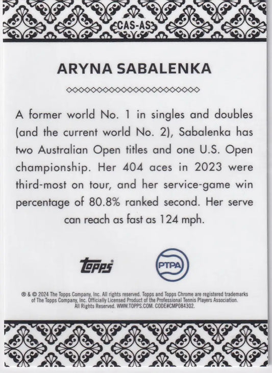 2024 Topps Chrome Aces #CAS-AS Aryna Sabalenka