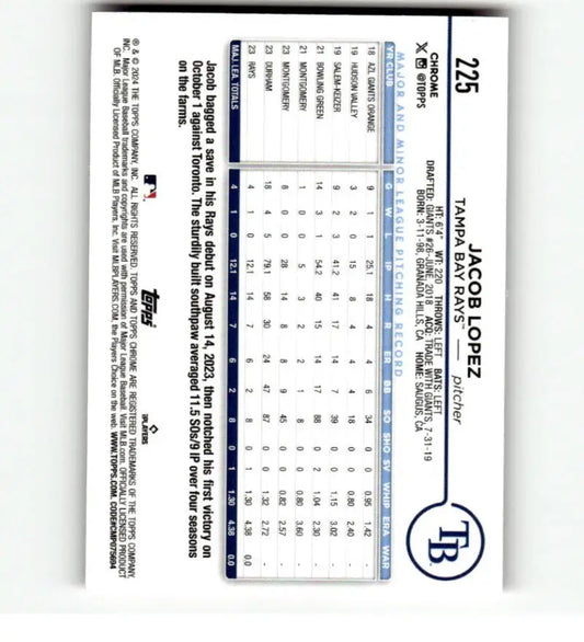 2024 Topps Chrome Refractor Pink #225 Jacob Lopez NM-MT RC Rookie Tampa Bay Rays Baseball Card