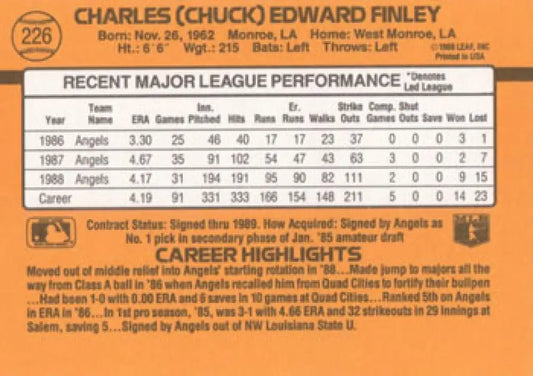 1989 Donruss #226 Chuck Finley NM-MT California Angels Baseball Card