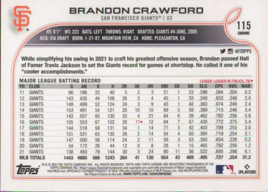 2022 Topps Chrome #115 Brandon Crawford NM-MT San Francisco Giants Baseball Card