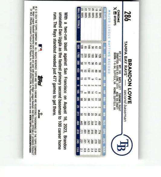 2024 Topps Chrome X-Fractor #286 Brandon Lowe NM-MT Tampa Bay Rays Baseball Card