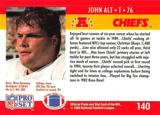 1990 Pro Set #140 John Alt NM-MT RC Rookie Kansas City Chiefs Football Card