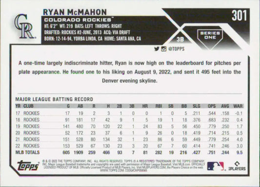 2023 Topps #301 Ryan McMahon NM-MT Colorado Rockies Baseball Card