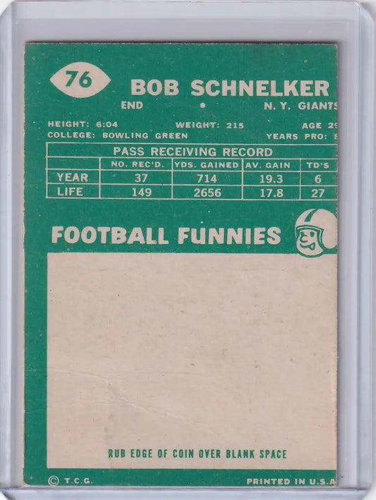 1960 Topps Football # 76 Bob Schnelker - New York Giants