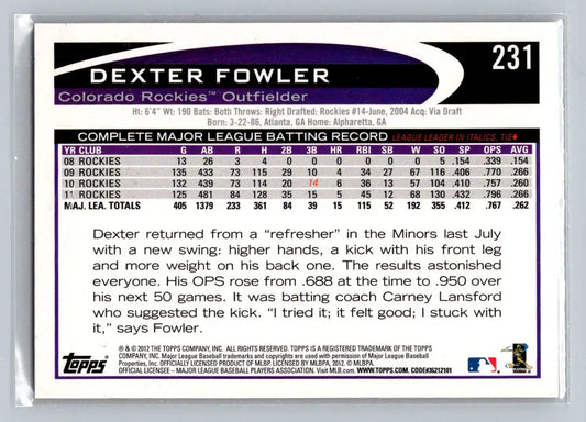 2012 Topps #231b Dexter Fowler Colorado Rockies