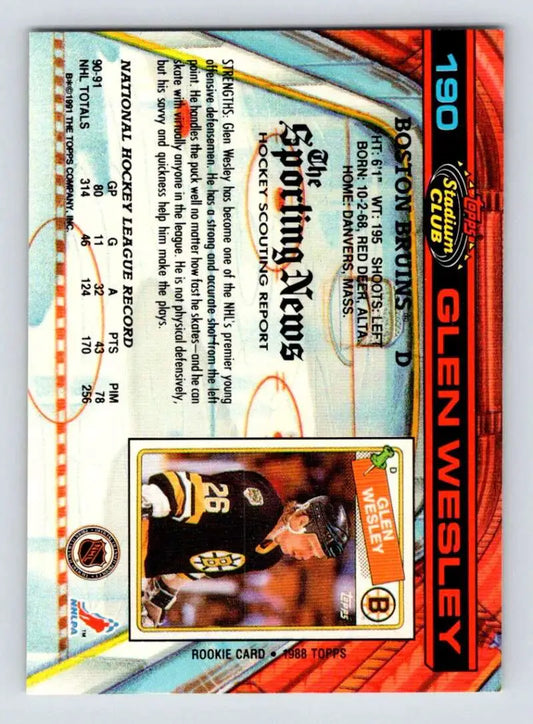 1991-92 Topps Stadium Club #190 Glen Wesley NM-MT Boston Bruins Hockey Card