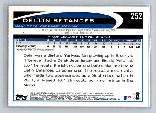2012 Topps #252a Dellin Betances New York Yankees Rookie