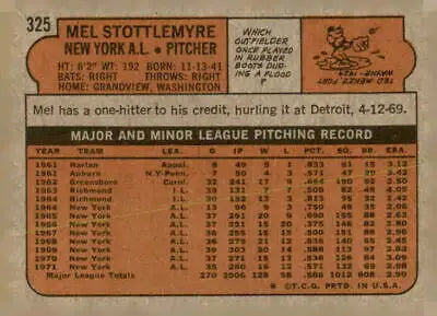 1972 Topps #325 Mel Stottlemyre EX-MT