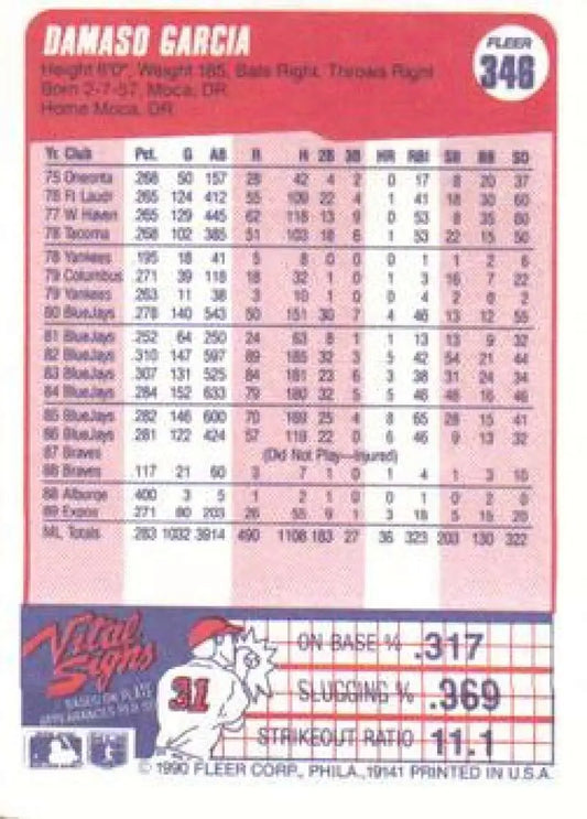 1990 Fleer #346 Damaso Garcia NM-MT Montreal Expos Baseball Card