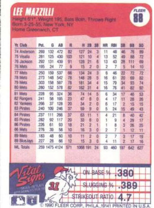 1990 Fleer #88 Lee Mazzilli NM-MT Toronto Blue Jays Baseball Card