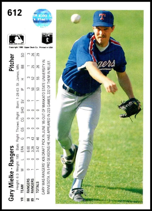 1990 Upper Deck #612 Gary Mielke NM-MT RC Rookie Texas Rangers Baseball Card