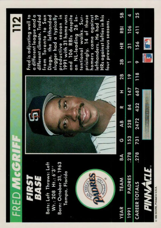 1992 Pinnacle #112 Fred McGriff EX San Diego Padres Baseball Card