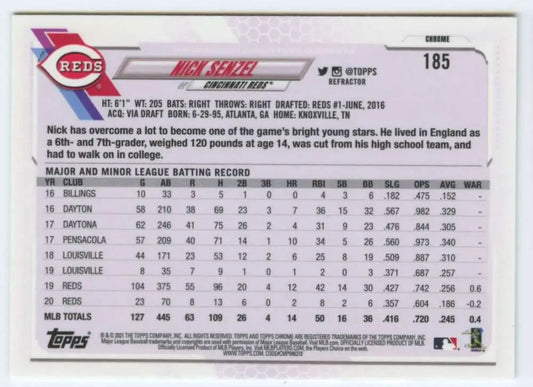 2021 Topps Chrome Refractor #185 Nick Senzel NM/MT Cincinnati Reds Baseball Card