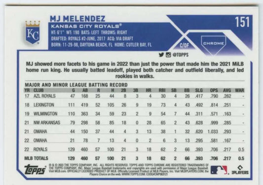 2023 Topps Chrome #151 MJ Melendez NM-MT Kansas City Royals Baseball Card