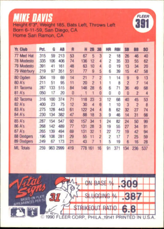 1990 Fleer #391 Mike Davis NM-MT Los Angeles Dodgers Baseball Card