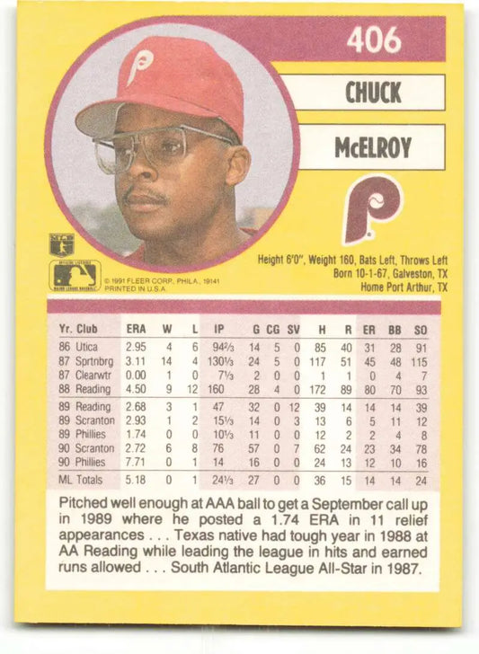 1991 Fleer #406 Chuck McElroy NM-MT Philadelphia Phillies Baseball Card