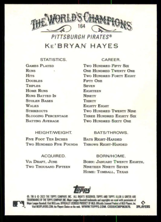 2023 Topps Allen and Ginter #164 Ke'Bryan Hayes NM-MT Pittsburgh Pirates Baseball Card