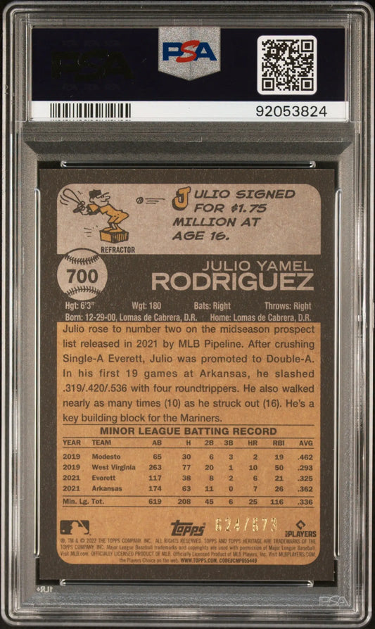 Julio Rodriguez 2022 Topps Heritage Chrome Refractor #700 #624/673 PSA 9 Mint