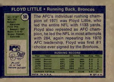 1972 Topps #50 Floyd Little EX-MT