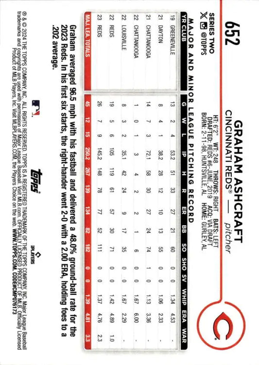 2024 Topps #652 Graham Ashcraft NM-MT Cincinnati Reds Baseball Card