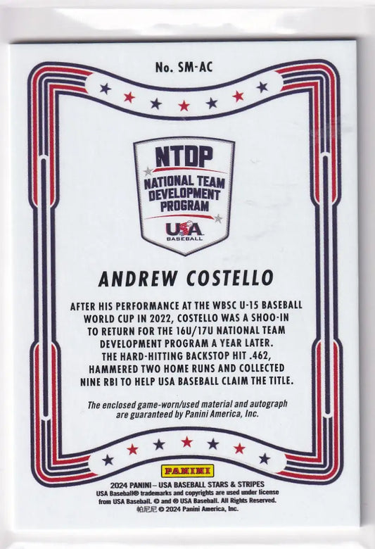 2024 Panini USA Auto Relic Andrew Costello