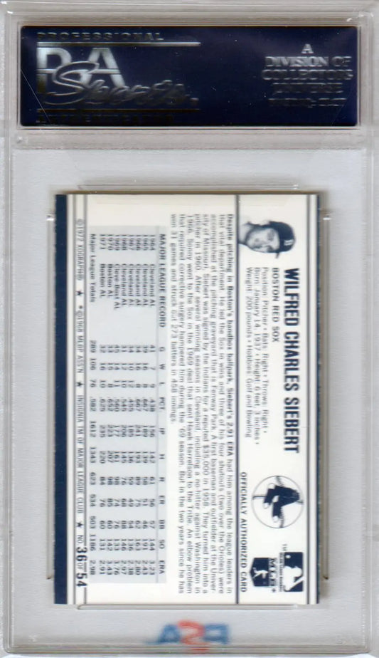SONNY SIEBERT 1972 Kellogg's #36 PSA 9 MINT - RED SOX