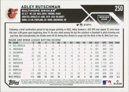 2023 Topps #250 Adley Rutschman NM-MT RC Rookie Baltimore Orioles Baseball Card