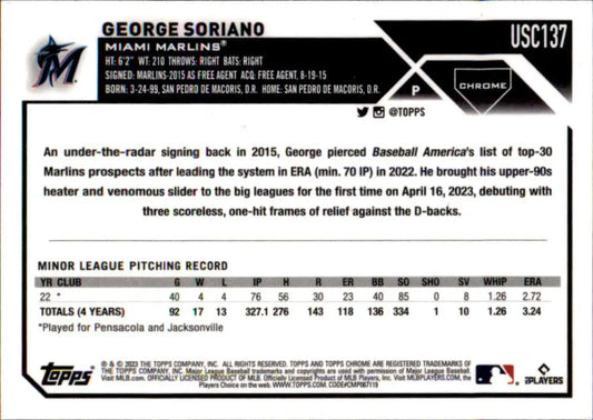 2023 Topps Chrome Update #USC137 George Soriano NM-MT RC Rookie Miami Marlins Baseball Card