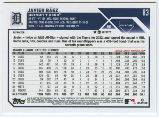 2023 Topps Chrome Refractor #83 Javier Baez NM-MT Detroit Tigers Baseball Card