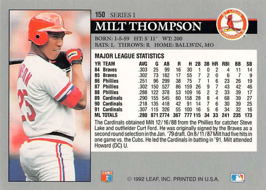 1992 Leaf #150 Milt Thompson NM-MT St. Louis Cardinals Baseball Card